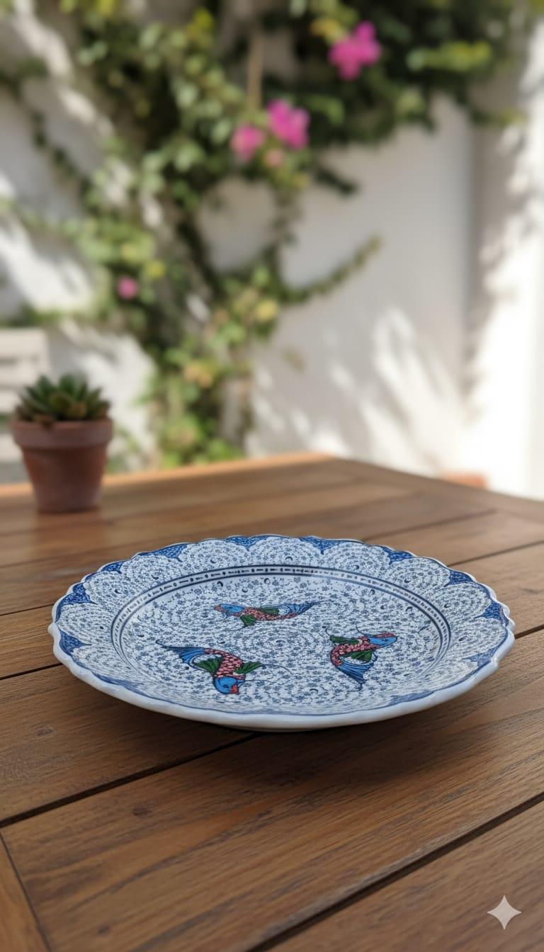 Ege'nin ve Akdeniz'in huzurunu yansıtan bu eşsiz seramik tabak, ince işçiliğin ve geleneksel desenlerin buluştuğu bir sanat eseri. Tabak üzerindeki her bir çizgi, ustalığın ve emeğin bir göstergesi. Canlı kuş figürleri ve zarif lale motifleri, geçmişin izlerini modern bir tasarımla birleştiriyor.
