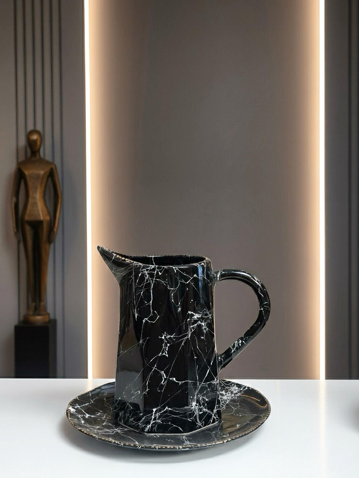 Bu sürahi, yalnızca suyu değil; gecenin bilgeliğini ve ayın büyüsünü taşır. Karanlık gövdesi, gökyüzünde dolunayın etrafında kıvrılan bulutları andırır. Hekate gibi hem koruyan hem de yön gösteren bir ruhu vardır.